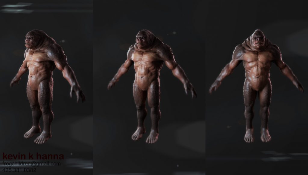 Characters and environments modeled, textured (sometimes lit and rendered) for both real-time and pre-rendered games and movies.